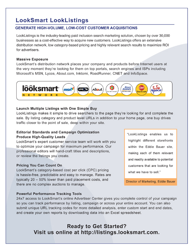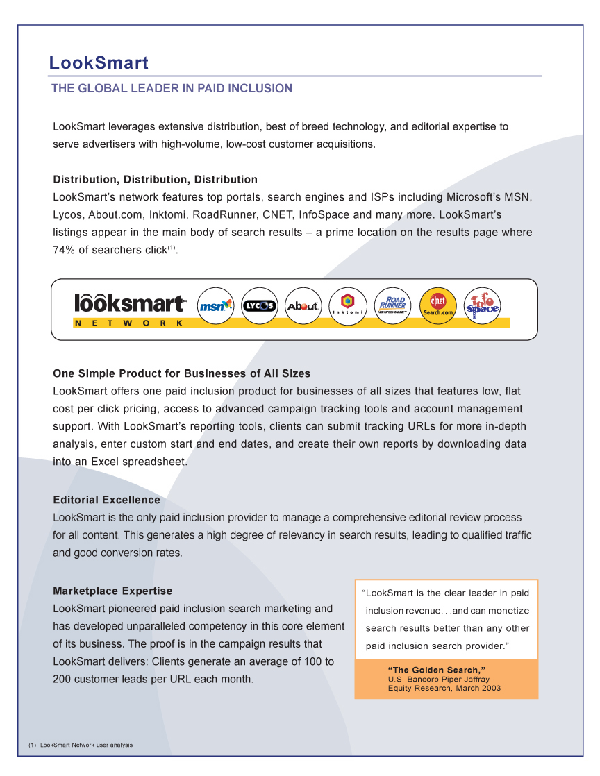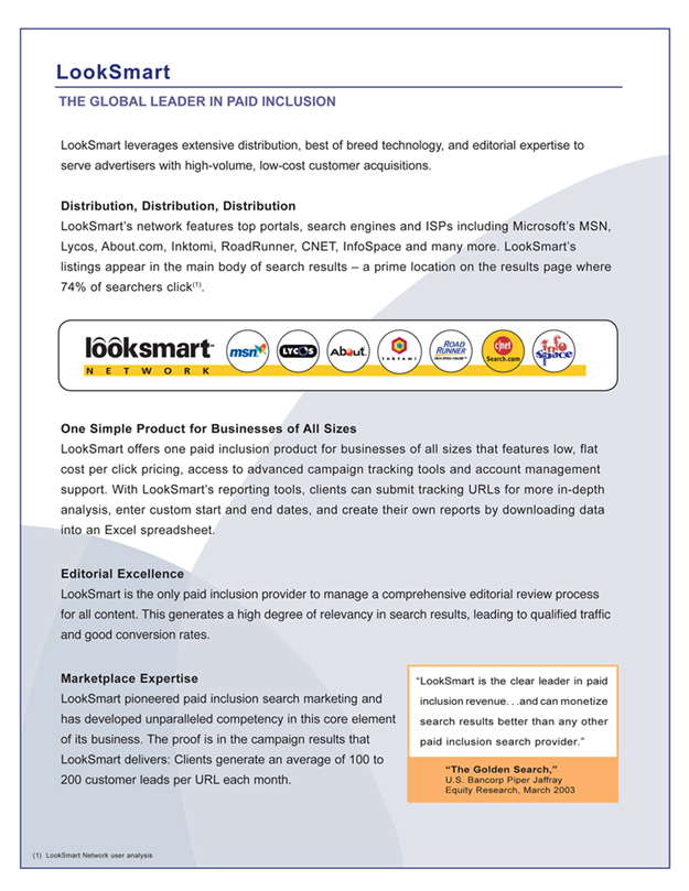 I started working with LookSmart as a Marketing Communication Specialist on a project basis in early July, and wrote the data-driven collateral below in time for SES, a conference in San Jose that ended August 21, 2003.